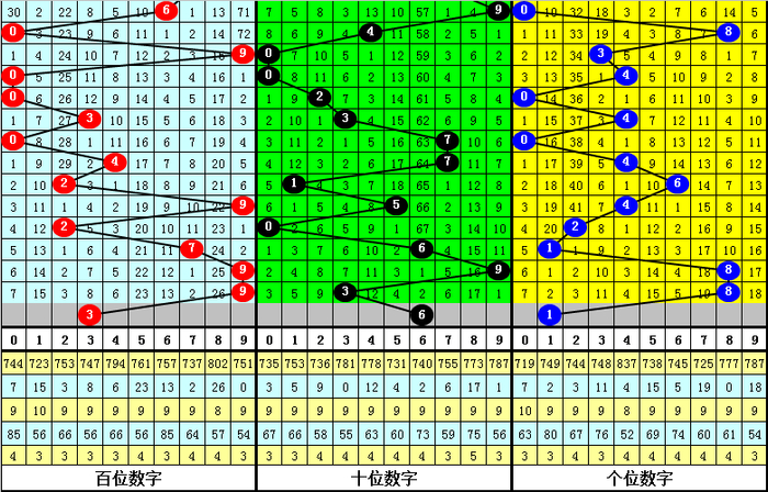 百位:近期大小 号码开出比例基本相当,大号目前连续开出3期,本期放弃大号预计小 号回补;另外,该位0路和1路号码在最近20期奖号中走势较热,2路号码表现相对较冷,本期该位放弃2路号码,参考号码3。